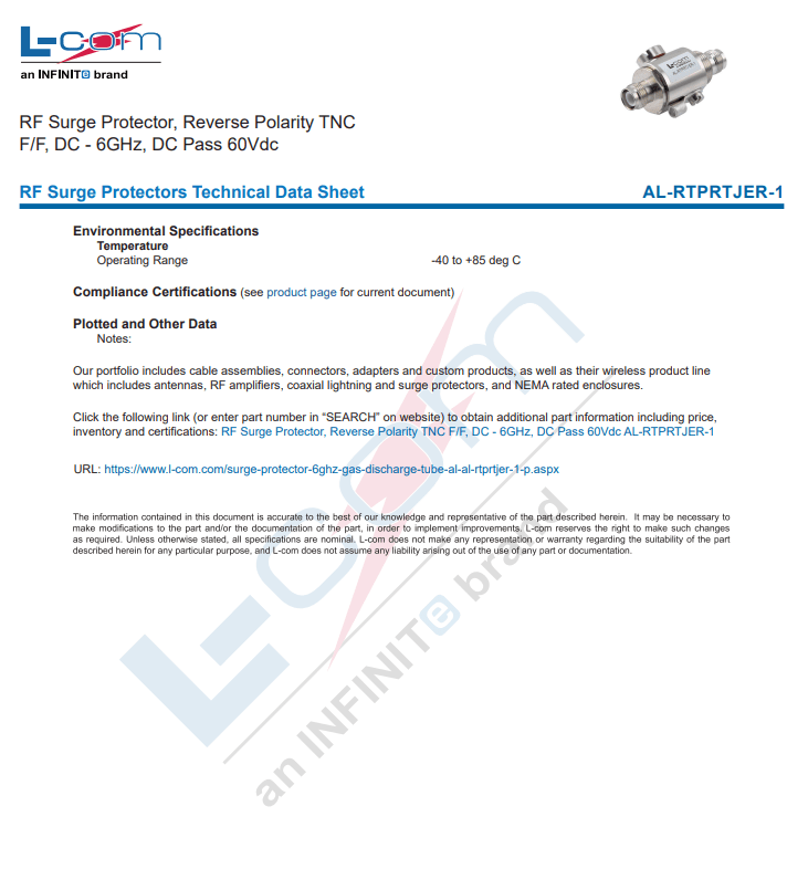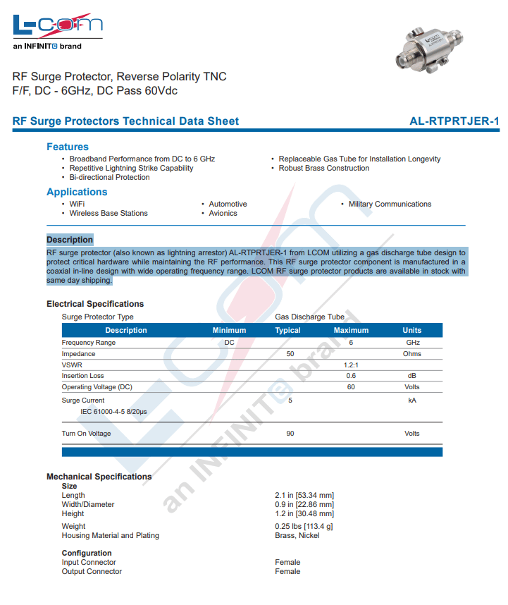coaxial in-line design with wide operating frequency range. LCOM RF surge protector products are available in stock with